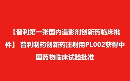 【普利第一张国内造影剂创新药临床批件】 普利制药创新药注射用PL002获得中国药物临床试验批准