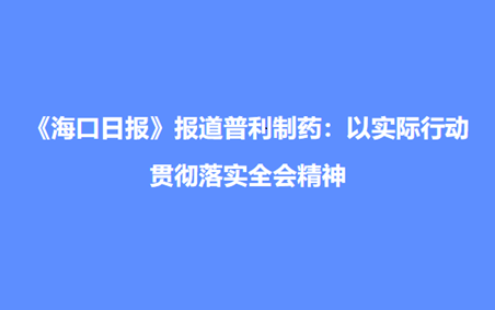 《海口日报》报道普利制药:以实际行动贯彻落实全会精神