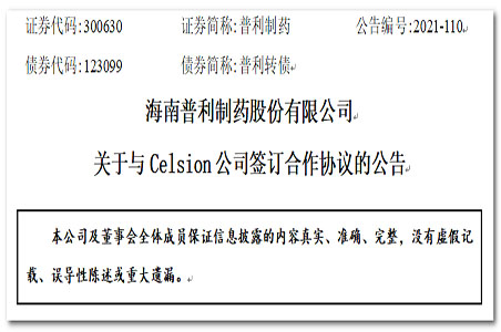 与Celsion达成合作,进军DNA疫苗领域HTH官网丨中国有限公司官网(以下简称“公司”或“普利制药”)于近日与美国生物...